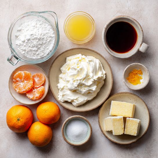 - Combine Ingredients: Whip cream with powdered sugar and vanilla until soft peaks form. In a separate bowl, whisk mascarpone, orange juice, and zest. Gently fold whipped cream into the mascarpone mixture.