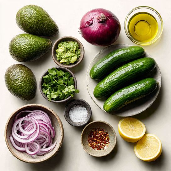 This salad is all about contrast. The avocado is silky and rich, while the cucumber is crisp and cool. Red onion cuts through with its sharpness, and the lemon juice brings everything to life. Add a pinch of chili for surprise heat that lingers gently on the tongue.