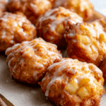 There’s something magical about biting into a warm, golden apple fritter, especially when it’s baked instead of fried. The edges are lightly crisp, the center is soft and pillowy, and the little pockets of cinnamon-kissed apple burst with sweetness in every bite. The scent alone will have your kitchen smelling like a cozy autumn fair, even in the middle of summer.