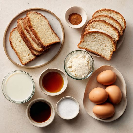 - Bread Slices: 6–8 slices, slightly stale, provide the soft, absorbent base