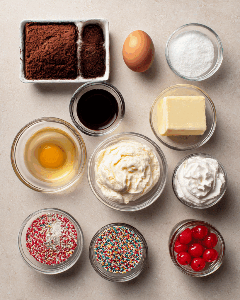 Ice Cream: The wild card—whether you choose vanilla bean, mint chip, or rocky road, this ingredient lets you personalize each sundae cupcake.