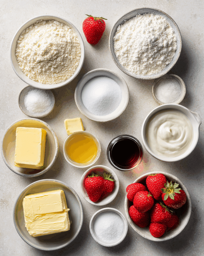 This recipe has roots in some of my most treasured kitchen memories. As a kid, I remember watching my grandmother cut fresh strawberries and sprinkle them with sugar until they turned syrupy and glossy. She’d whip cream by hand, not because she had to, but because she believed it made a difference in the taste. And the shortcakes? Buttery, crumbly, and golden, with a rustic charm that no store-bought version could touch.
