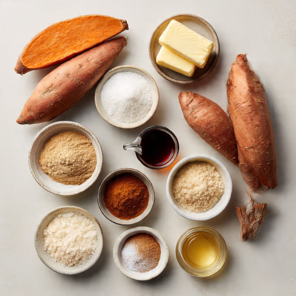 - Sweet Potatoes: 4 large, peeled and sliced into ½-inch rounds. These are the base, naturally sweet and tender when baked.