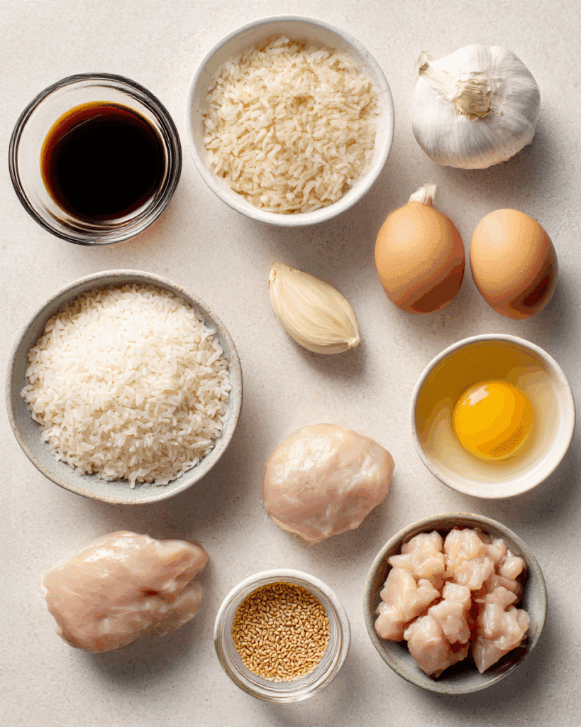 Golden, savory Chicken Fried Rice with tender chicken, fluffy jasmine grains, crisp vegetables, and soft ribbons of egg, all kissed with soy, oyster sauce, and a whisper of sesame.
