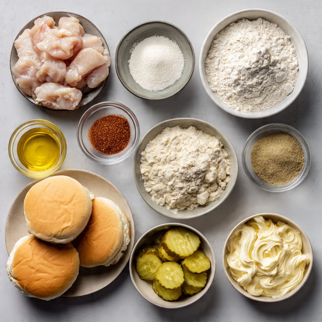 Spread mayo on the bottom bun, add fried chicken, top with pickles, and cap with the top bun. - Serve and Enjoy: