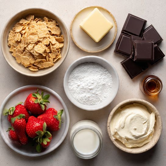 - Fresh Strawberries: 8–10, sliced. Juicy, tart, and naturally sweet—they balance out the richness.