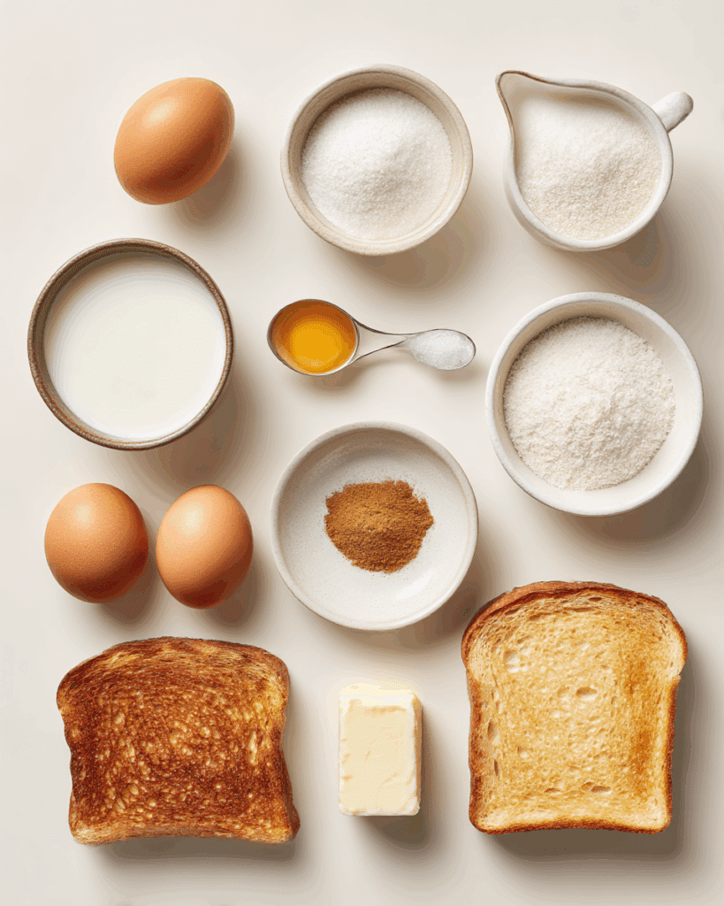 - Bread: 8 slices, thick-cut like brioche or challah for the best texture.