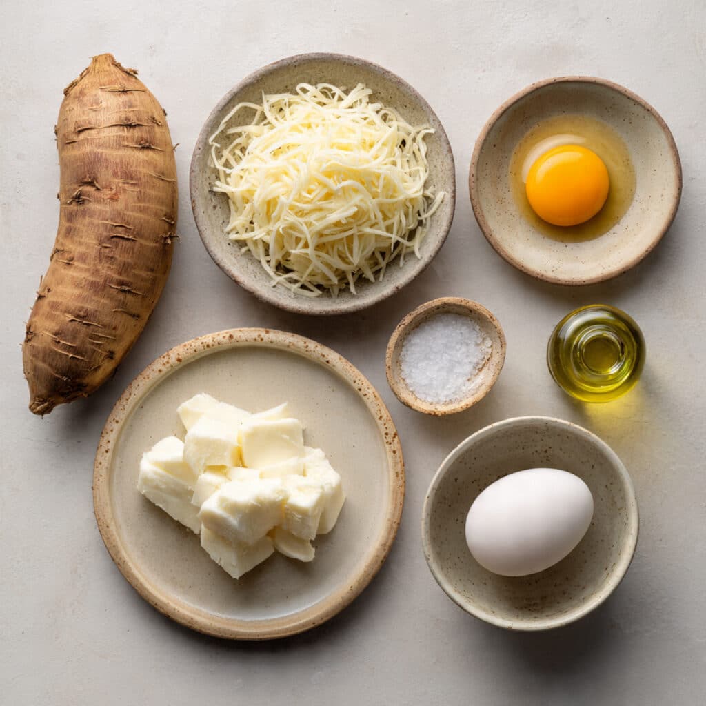 - Combine Ingredients: In a bowl, mix grated cassava, shredded cheese, egg, and salt until well combined.