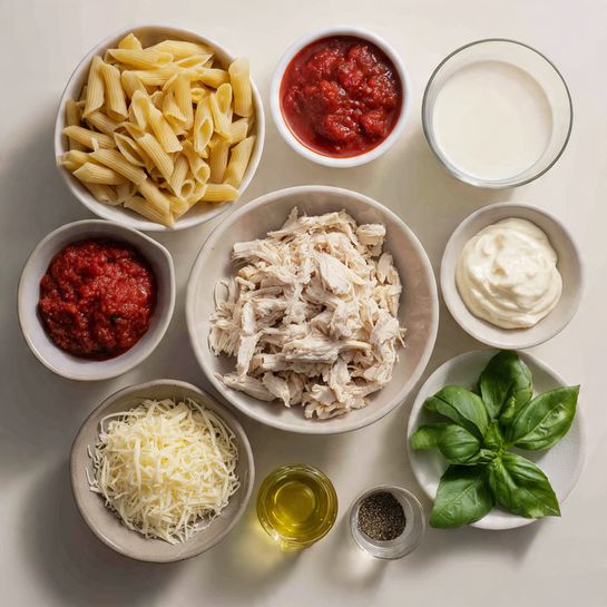 Ingredients in Creamy Tomato Pasta Bake with Chicken