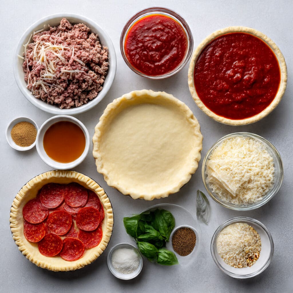 Ingredients in Deep Hamburger Sausage and Pepperoni Pie
