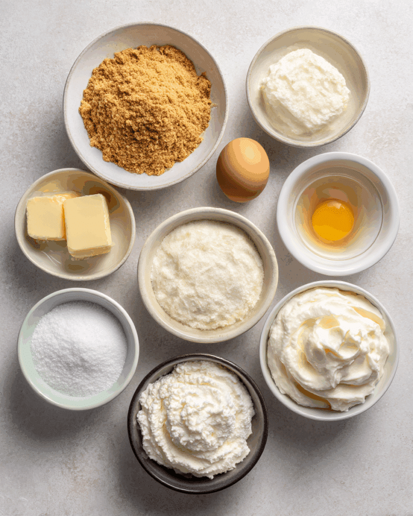 Mix graham cracker crumbs, sugar, and melted butter. Press firmly into the pan’s bottom. Bake for 8–10 minutes until lightly golden. Let cool slightly. - Prepare the Filling: