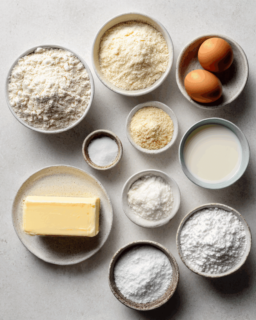 - Combine Ingredients: Beat egg yolks with sugar until pale. Mix in softened butter, lemon zest, and vanilla. Sift together potato starch, almond flour, salt, and baking powder. Combine with yolk mixture.