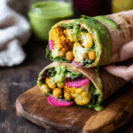 These Indian Frankies are a handheld burst of flavor, packed with spicy potato-chickpea filling, tangy chutneys, and crunchy onions all wrapped in a soft homemade flatbread.