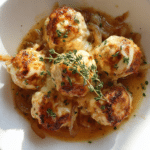 Take everything you love about classic French onion soup—the rich, slow-cooked onions, the savory broth, and that irresistible cheesy top—and wrap it into a cozy, satisfying dinner: French Onion Chicken Meatballs. These tender, juicy meatballs are smothered in golden caramelized onions and gooey melted cheese, turning your favorite soup into a hearty main dish that’s both comforting and totally crave-worthy.