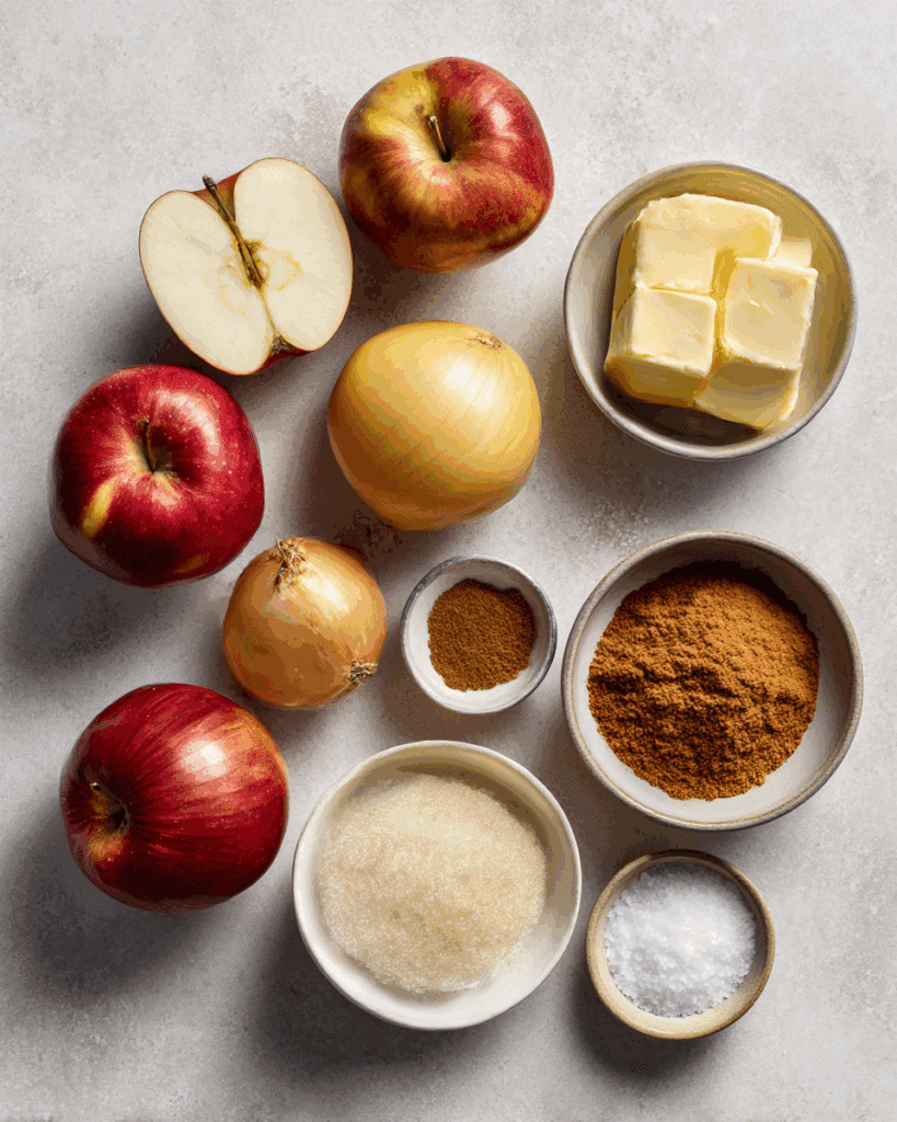 The textures in this dish are what make it so memorable. The apples turn soft but not mushy, holding just enough bite to contrast with the silkiness of the onions. Butter ties everything together into a glossy glaze, while cinnamon adds warmth and brown sugar deepens the flavor. A pinch of salt keeps it from tipping too sweet, making every bite balanced and rich.