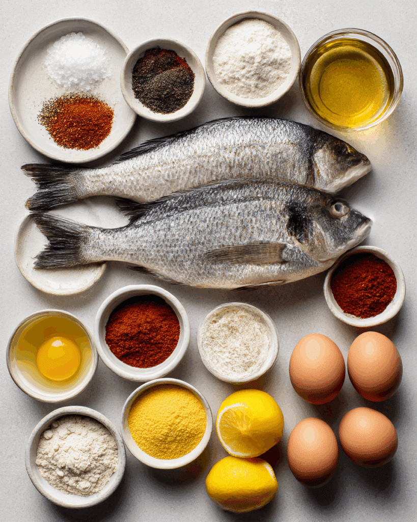 - Whole Tilapia or Fillets: 4 tilapia fillets (about 6 ounces each) — Mild and flaky, the perfect fish for frying.