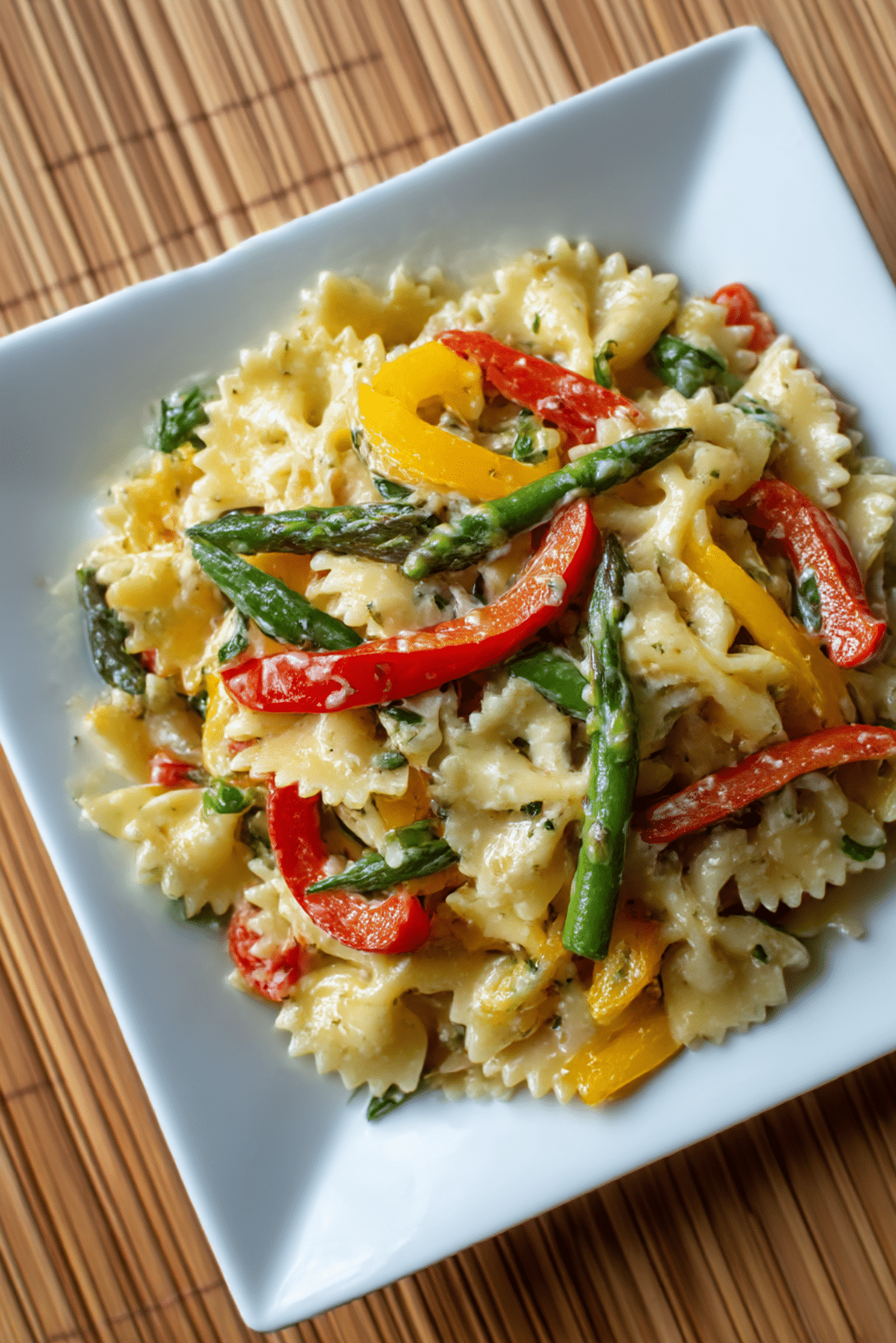 PrintGarlic and Roasted Bell Pepper Farfalle