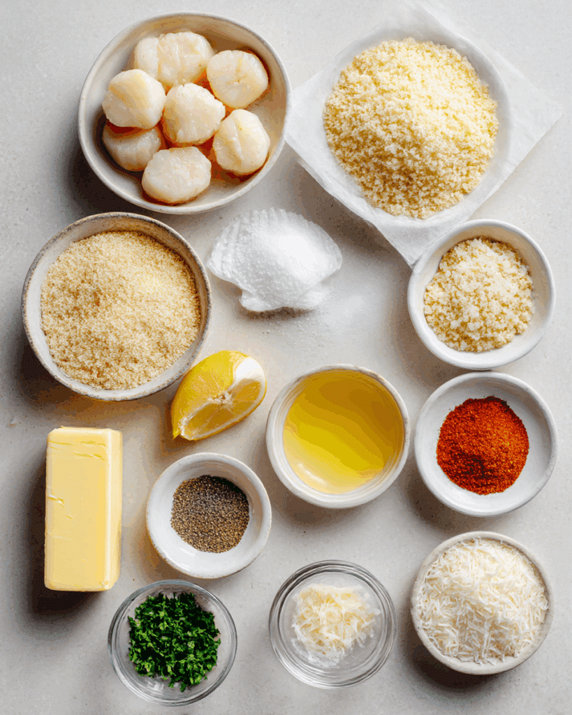 - Assemble the Dish: Pour the garlic butter mixture over the scallops. Top with breadcrumbs and chopped parsley.