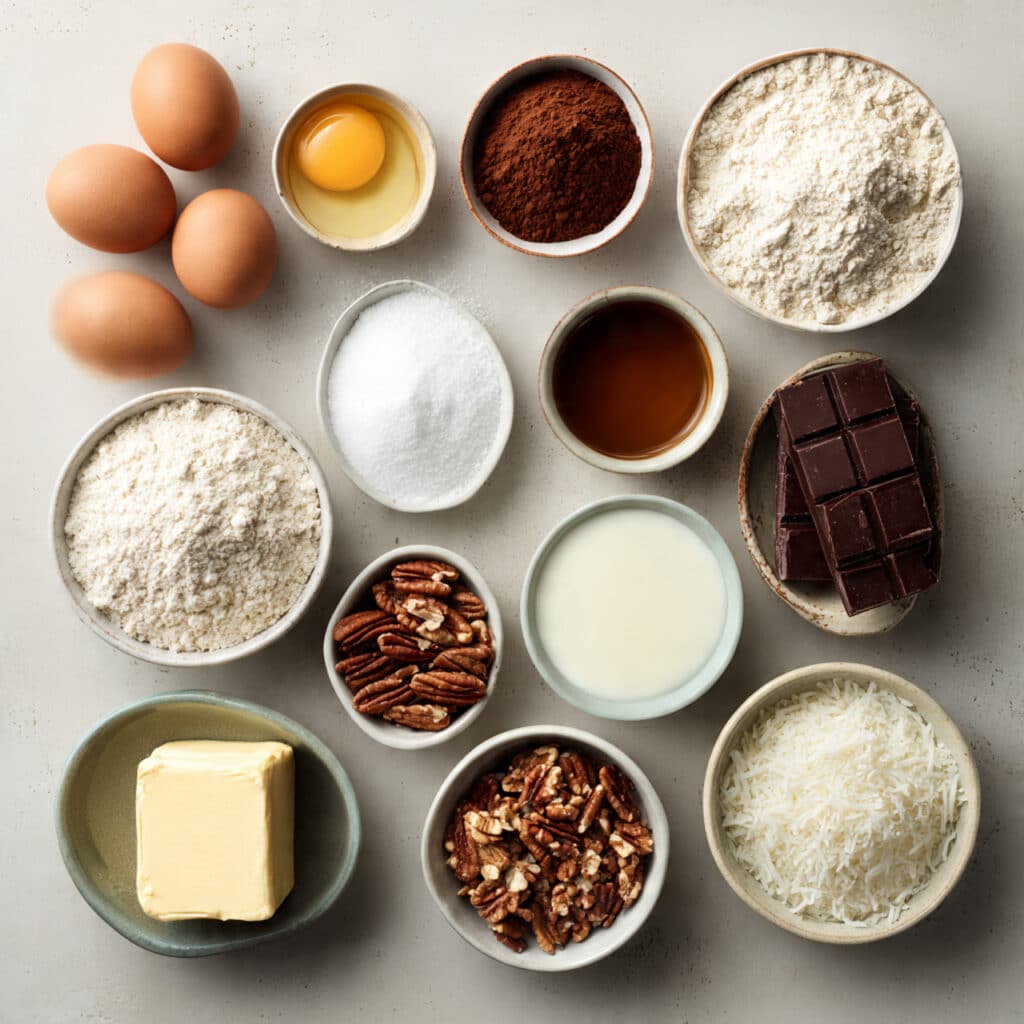You’ll love how the tender chocolate sponge contrasts with the rich, chewy coconut pecan center. The ganache on top adds a smooth finish that ties it all together. Every bite is soft, creamy, and crunchy all at once.