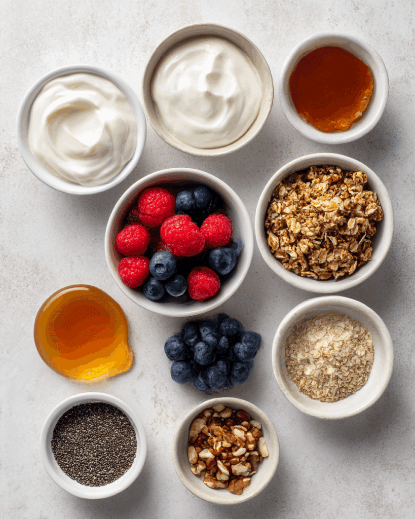 Greek Yogurt: Thick, tangy, and protein-rich, it’s the hero that makes this parfait creamy and satisfying.
