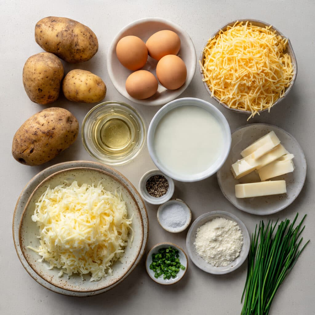 - Shredded Cheddar Cheese: 1 cup. Melts beautifully into the egg filling and adds sharpness.