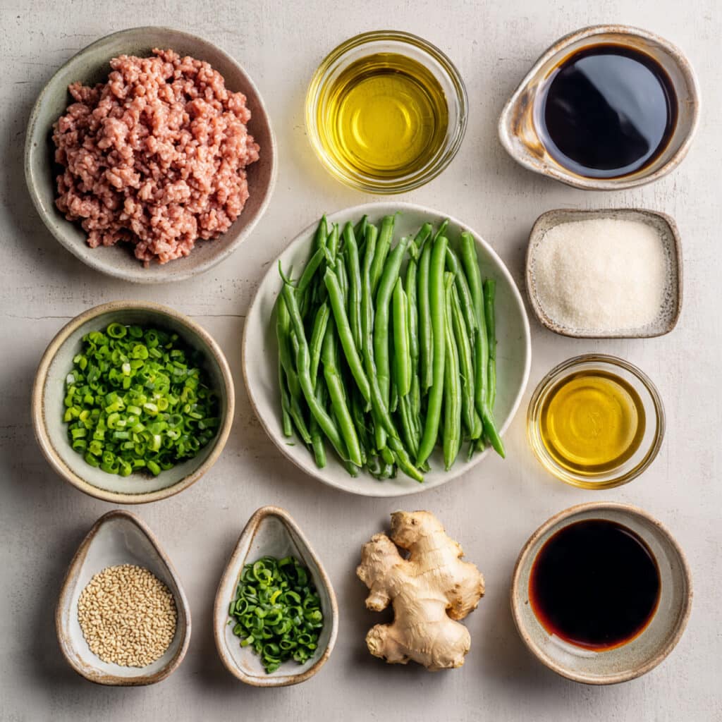 Ground chicken also gives the meal a very everyday kind of ease. Instead of slicing meat or marinating for hours, you get straight into the good part. Add green beans, a savory sauce, and a hot skillet, and dinner starts feeling possible right away.