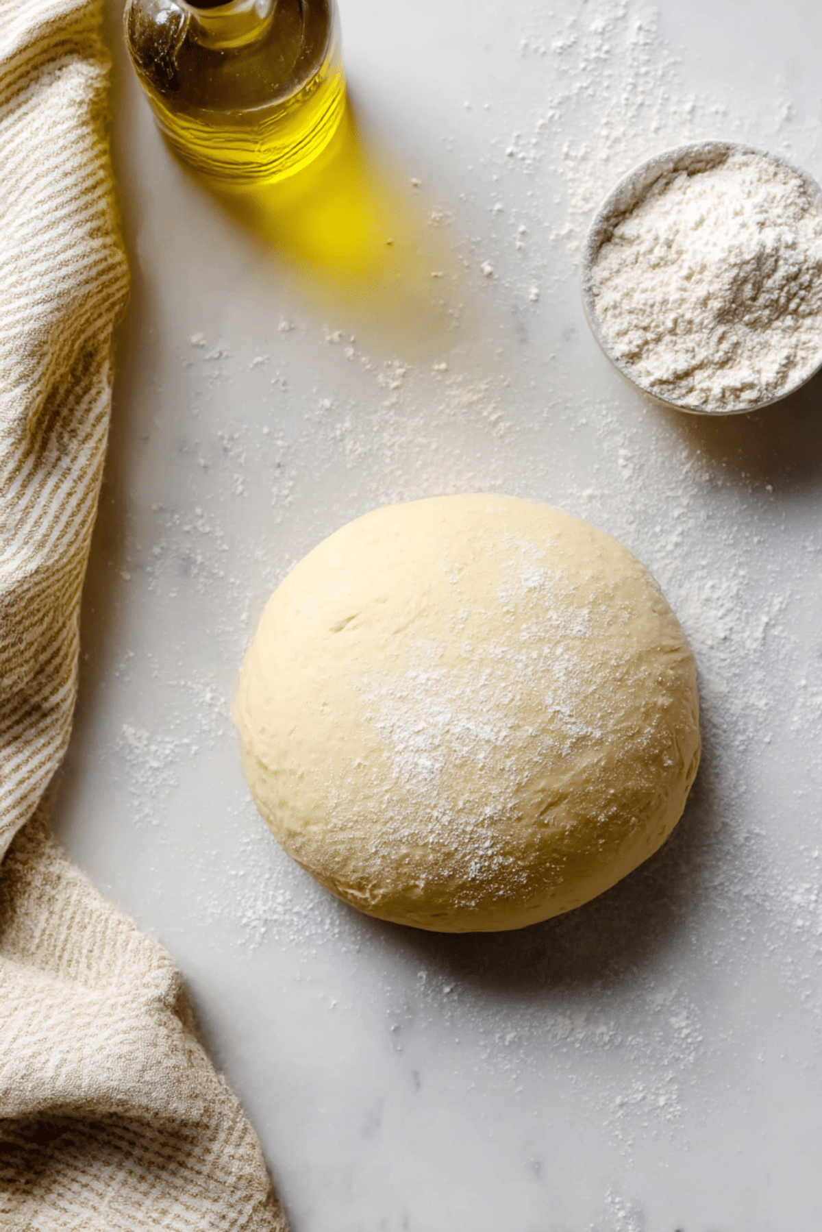 Transfer the dough to a floured surface. Knead by hand for 8–10 minutes until smooth and elastic. If using a stand mixer, use the dough hook on medium speed for about 5 minutes. - Assemble the Dish: