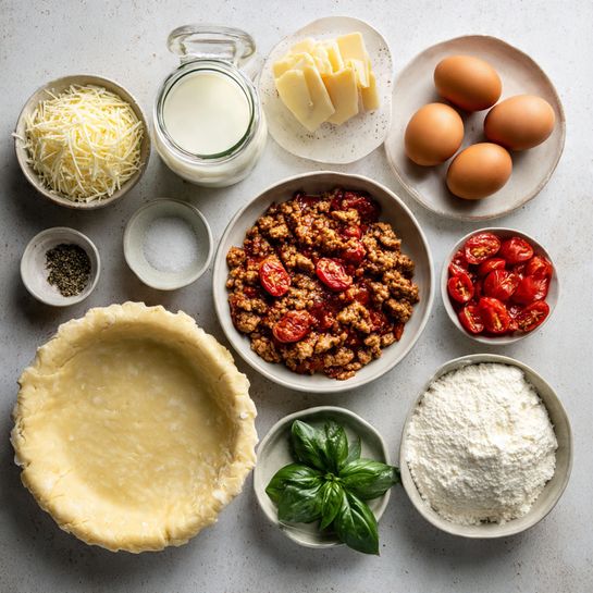 The word “quiche” may sound French — and it is — but this kind of savory custard tart actually has roots in German cuisine. The Lorraine region of France popularized it with its famous quiche Lorraine. This version gives it an Italian twist, using seasoned sausage, fresh tomatoes, and herbs you’d find in a classic pasta dish. It’s like brunch met lasagna and made something magical.