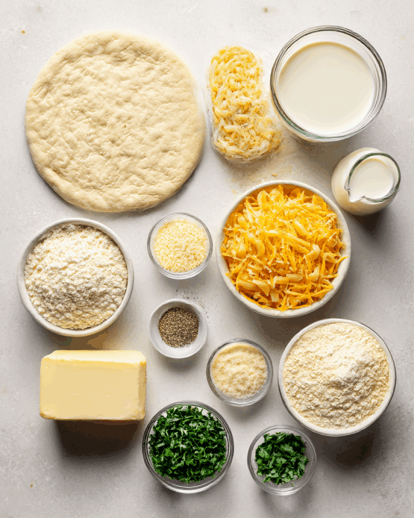 Pizza Dough: Provides the crispy, chewy base that holds the richness of the pasta topping.