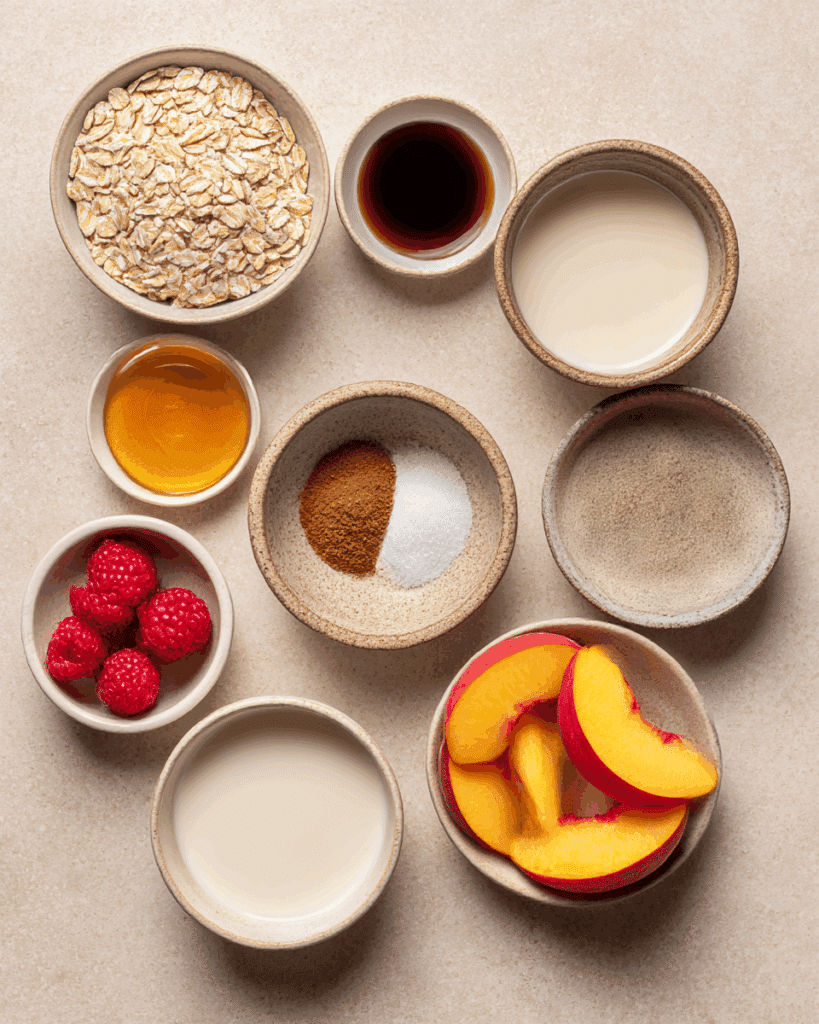 - Apple Pie Oats: Add chopped apples, a dash of nutmeg, and swap peaches for walnuts.