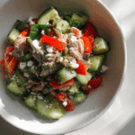 Fresh, bright, and full of bold flavor, this Mediterranean tuna salad is the kind of dish that makes you feel like you’re eating lunch on a sunny terrace overlooking the Aegean Sea. It’s packed with juicy cucumbers, sweet bell peppers, briny capers, and tender tuna, all tied together with a drizzle of olive oil and a burst of lemon juice. Every bite is refreshing, crunchy, and satisfying without being heavy, making it perfect for everything from a quick lunch to a light dinner.
