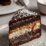 A decadent layered dessert inspired by the classic Mounds bar, this cake features moist chocolate layers, a sweet coconut center, and rich chocolate ganache topping.