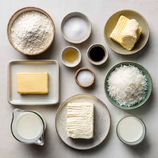 - Coconut milk: 1 cup — infuses the batter with coconut flavor and moisture.