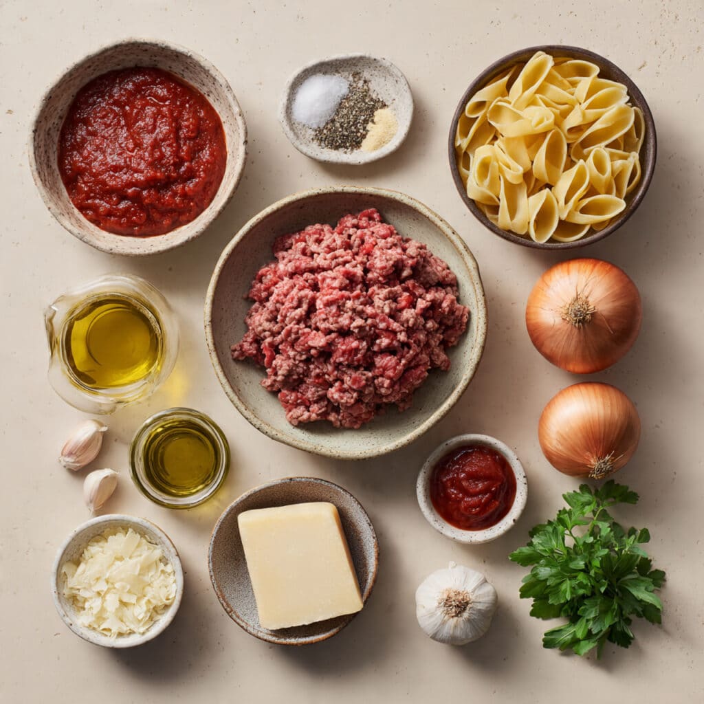 Ingredients You Will Need For Onion Ground Beef Pasta