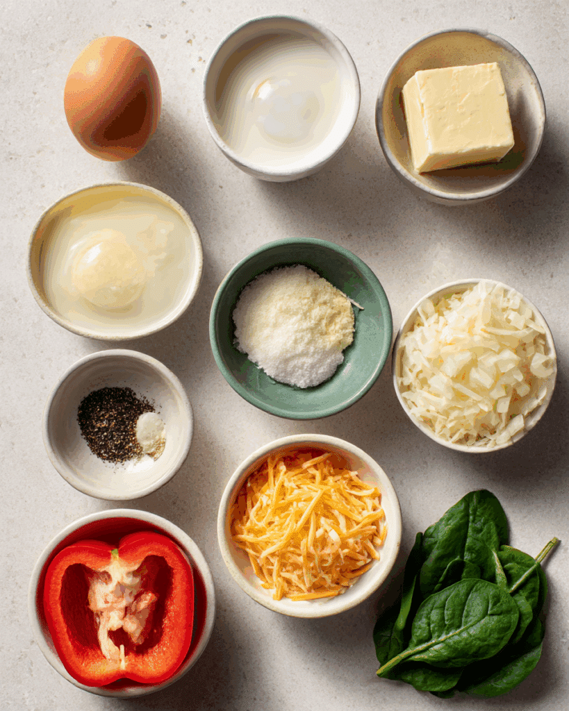 - Optional fillings: cheese, herbs, sautéed veggies, ham, etc.