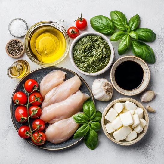 Juicy chicken meets creamy melted cheese, bright pesto, and fresh tomatoes. The contrast between warm chicken and cool tomato topping creates perfect balance in every bite.