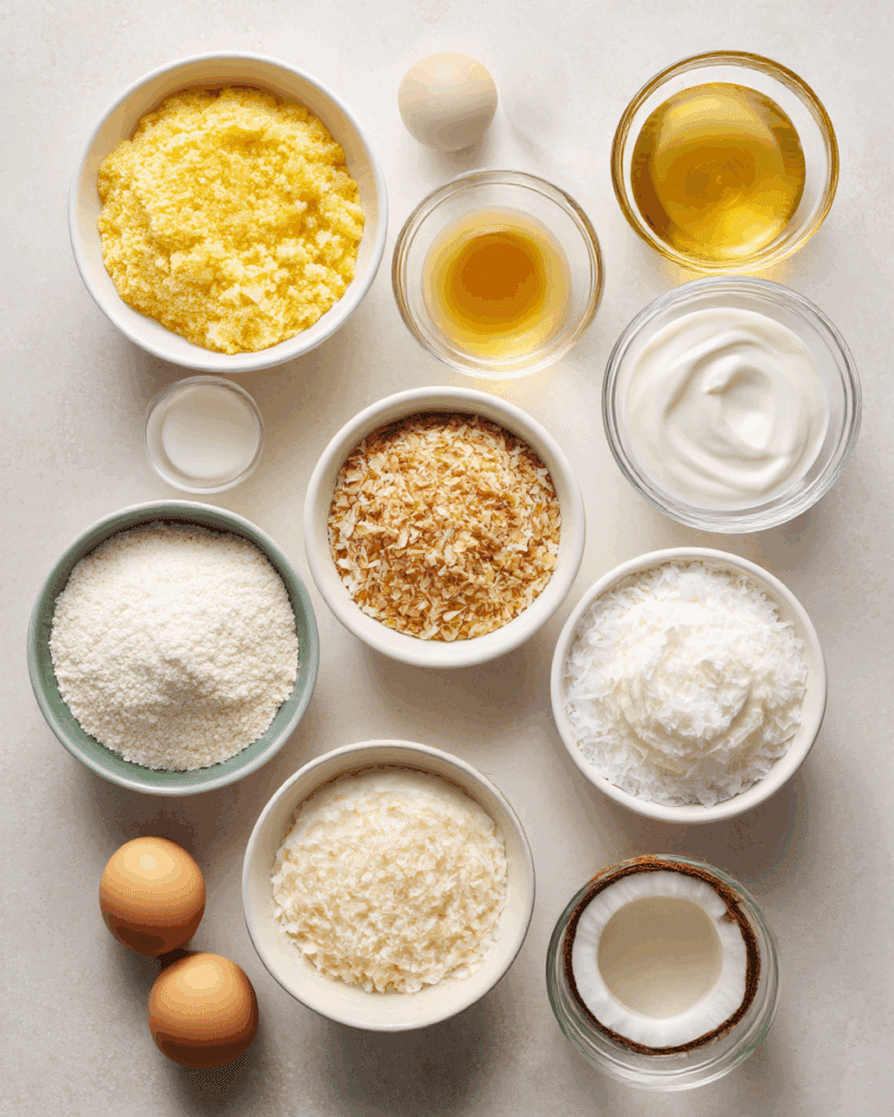 Each ingredient plays a role in the cake’s light, tropical flavor. Here’s what you’ll need: