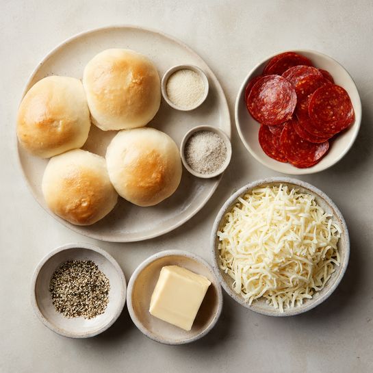 - Assemble the Dish: Slice the rolls horizontally, spread pizza sauce on the bottom layer, add mozzarella and beef pepperoni, then place the tops back on.