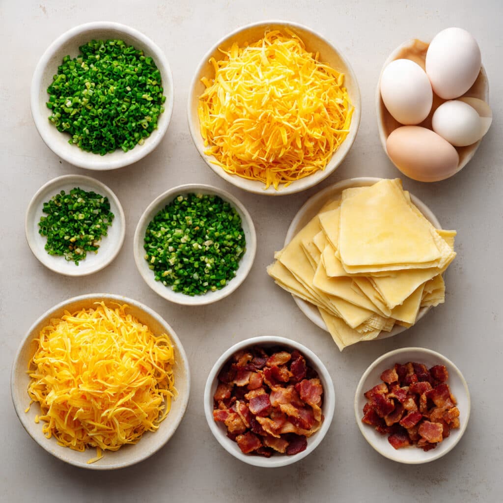 - Shredded Cheese: 1 cup (cheddar or mozzarella) – Adds a melty, creamy texture that pairs perfectly with the egg.
