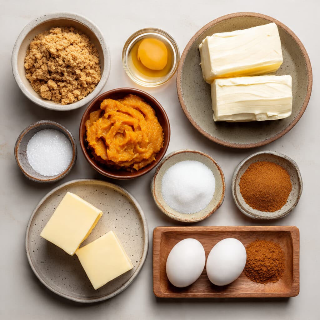 - Assemble the Dish: Beat the cream cheese and remaining sugar until smooth, add eggs and vanilla, then split the batter and stir the pumpkin and spices into one half.