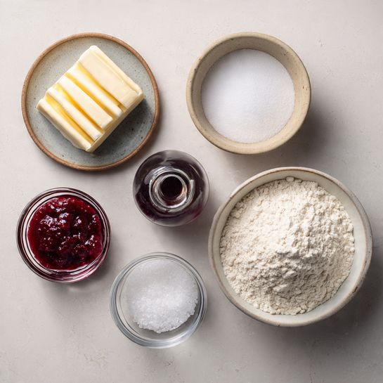 - Raspberry Jam: ½ cup. Adds bright, fruity contrast to the buttery cookie base.