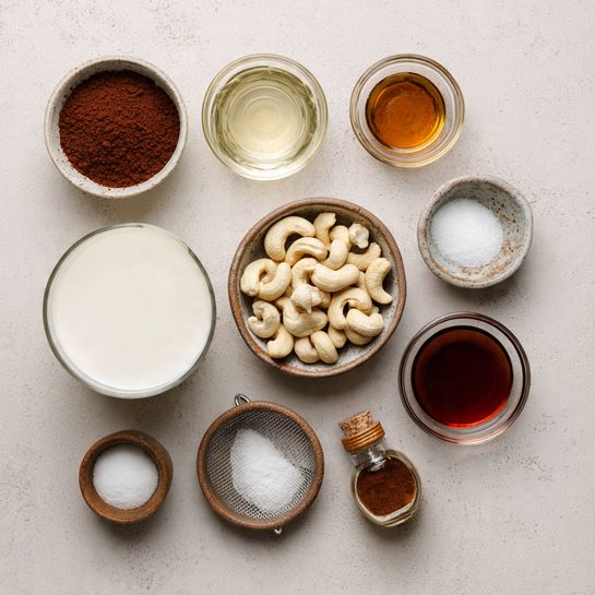 - In a high-speed blender or food processor, blend soaked cashews, coconut milk, cacao powder, maple syrup, coconut oil, vanilla, and salt until completely smooth.