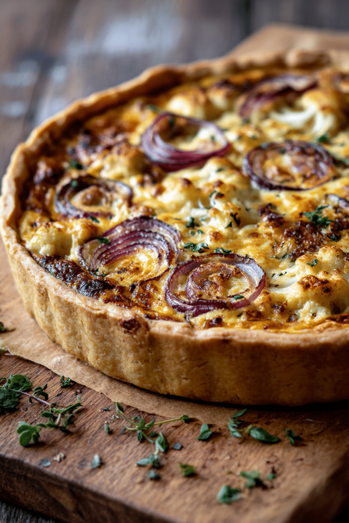 A deliciously creamy quiche featuring roasted cauliflower and caramelized red onions in a buttery crust. Perfect for brunch, lunch, or a light dinner — rich, savory, and utterly satisfying.