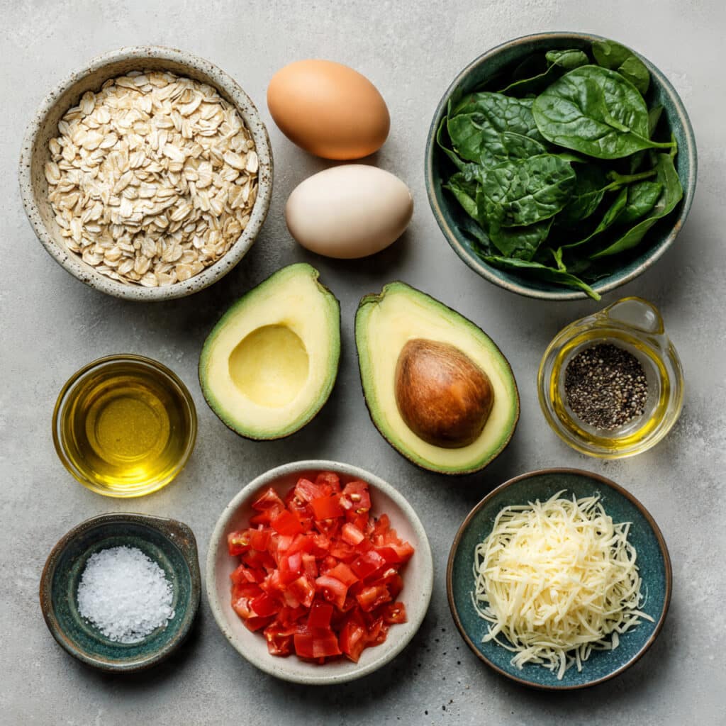 To make this savory oatmeal bowl, gather the following ingredients. Each one plays a key role in creating a balanced, flavorful dish.