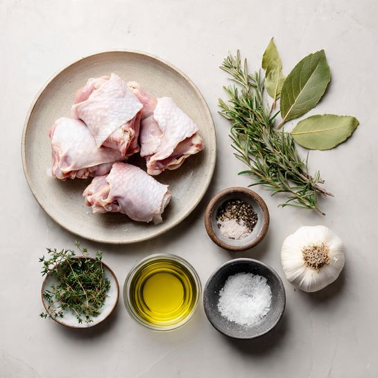 - Fresh Thyme: 4–5 sprigs. Bright, earthy flavor that pairs well with poultry.