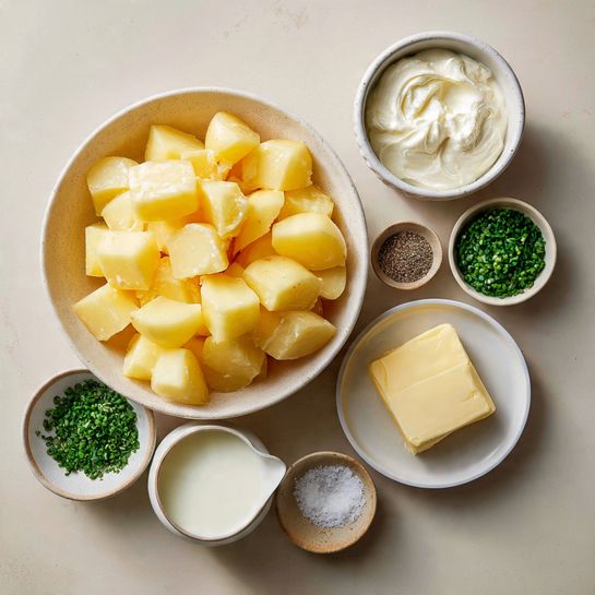 - Unsalted Butter: 4 tablespoons – Melts into the potatoes for silky texture.