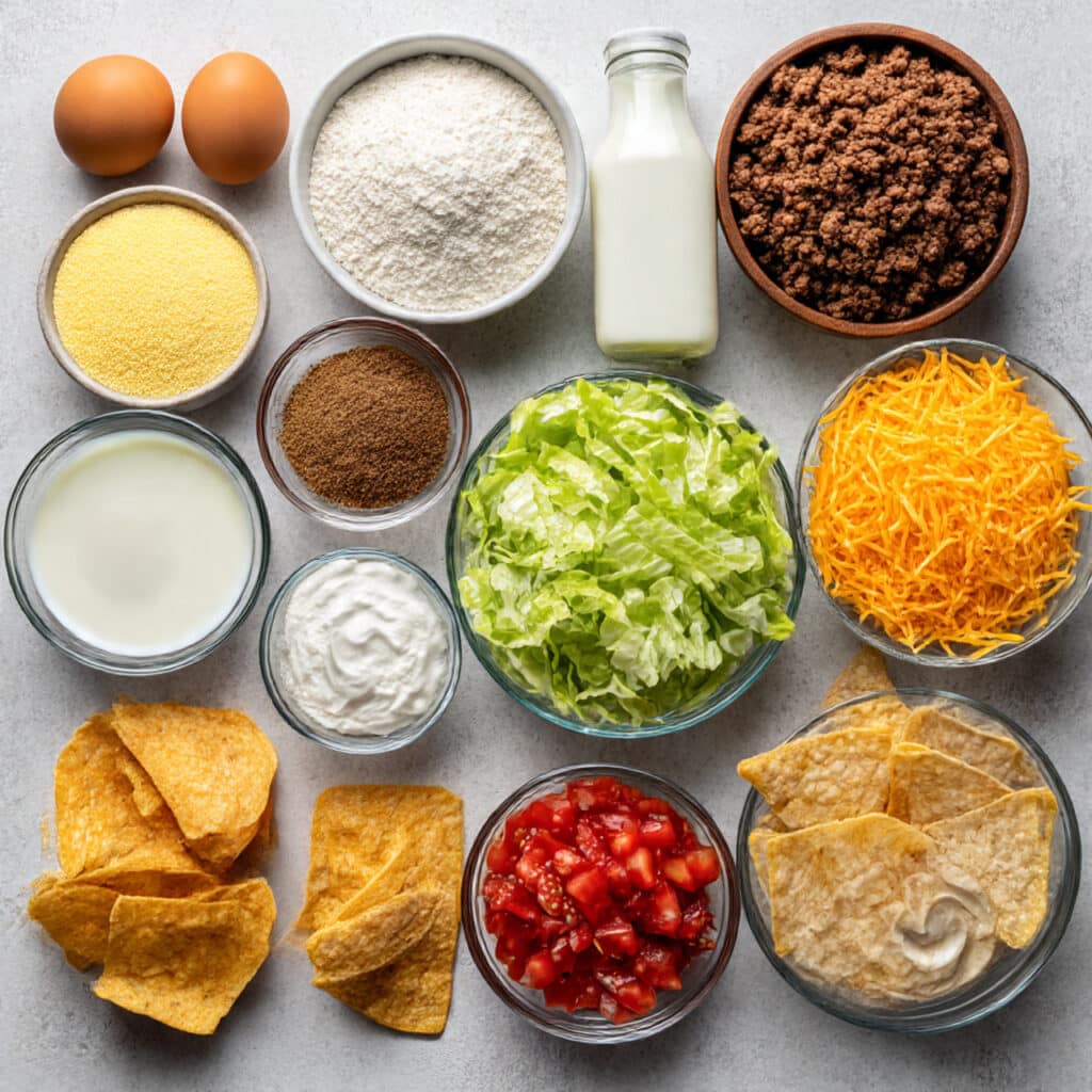 - Assemble the Dish: Press the dough evenly into the skillet. In a pan, cook the ground beef with taco seasoning until browned, then spread it over the crust. Sprinkle the cheddar cheese on top.