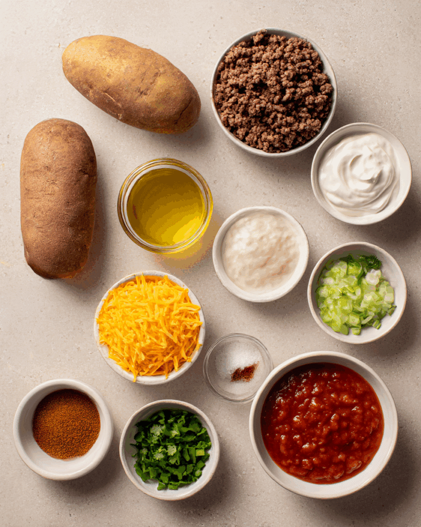- Russet Potatoes: 4 large, scrubbed and dried — starchy and sturdy, ideal for stuffing.