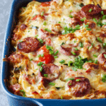 Casseroles like this have deep roots in American comfort cooking, often designed to stretch ingredients into hearty meals that feed a crowd. Kielbasa, originally from Poland, adds a smoky, garlicky depth that pairs wonderfully with pasta and cheese. The trio of mozzarella, cheddar, and Parmesan brings together creamy meltiness, sharp tang, and salty umami. It’s a dish where traditions meet indulgence in the tastiest way.