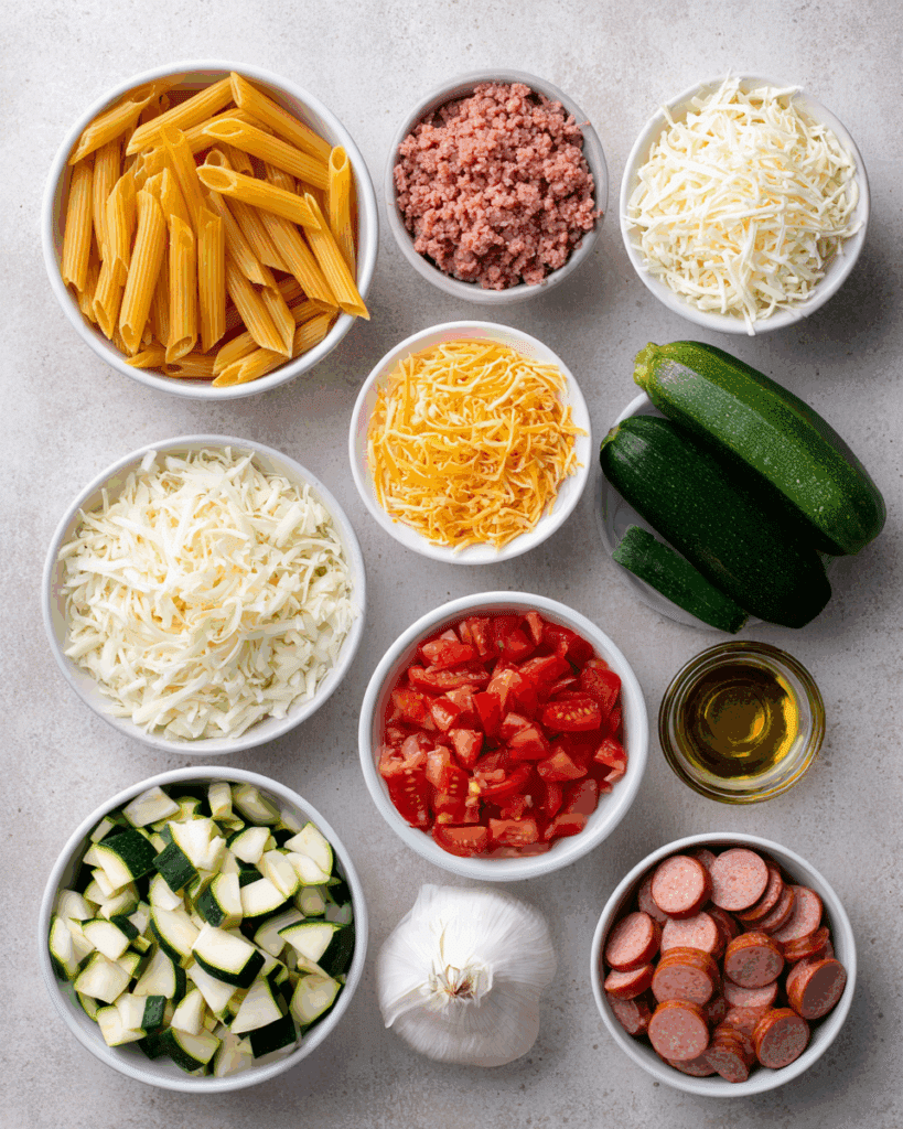 This recipe was born out of a craving for something cheesy, filling, and a little nostalgic. It brings back memories of weeknight dinners when the kitchen was filled with the rich aroma of baked pasta dishes. My mom would always add a twist, and this version with kielbasa and three cheeses quickly became a family favorite. It’s the kind of dish you make when you want everyone at the table to smile before the first forkful.